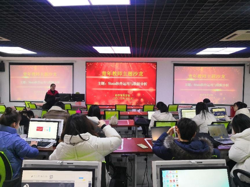 12月2日下午,由经济管理学院党总支主办、经济管理学院分教师发展中心承办的2022-2023学年第四期青年教师主题沙龙活动在实训室310举行。本期沙龙活动由大连海事大学的刘雅婕博士做《Stata 软件运用与数据分析》的研究方法专题讲座,全体专任教师参与。经济管理学院副院长何雪莲主持。