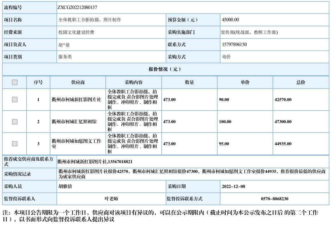江南网页版全体教职工合影拍摄、照片制作自行采购信息公示