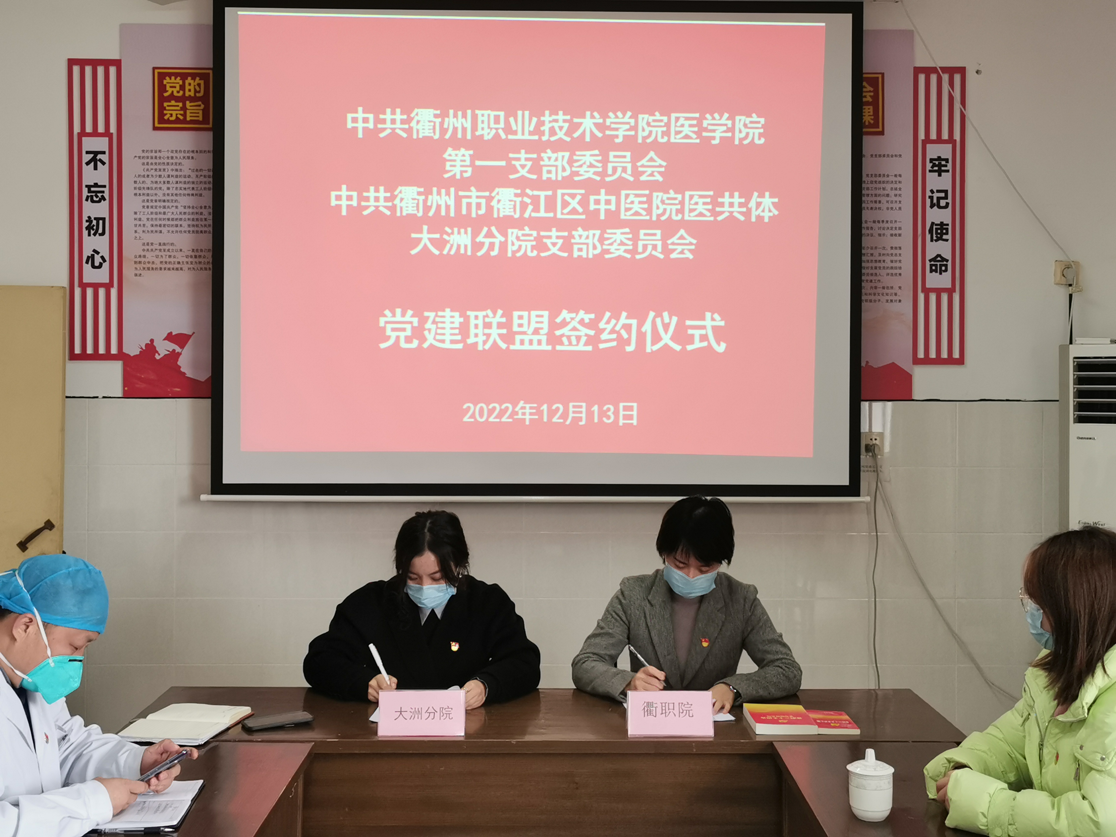 同日,余文富一行还赴衢江区中医院医共体大洲分院进行党建工作调研,重点围绕党建联盟工作、针灸推拿专业校外见习基地建设等进行交流探讨,医学院第一党支部与衢江区中医院医共体大洲分院党支部签订了党建联盟协议,与大洲分院签订了针灸专业见习基地协议。