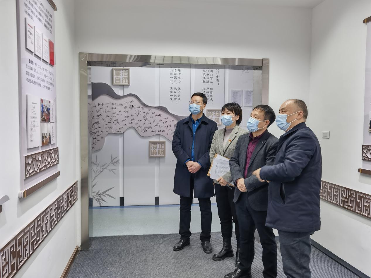 交流后,陈湛书记、余小明院长陪同余文富一行参观了具有中医药特色医院党建文化墙。