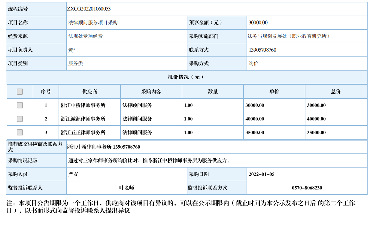 江南网页版2023年法律顾问服务项目自行采购信息公示