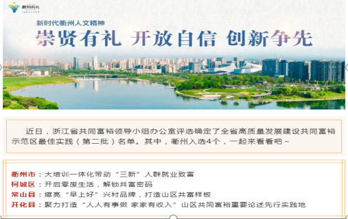 近日,衢州市“大统一培训带动‘三新’人群就业致富”创新做法入选全省第二批共同富裕最佳实践。我校积极参与该项目建设,成功打造了高质量就业示范带、共富培训在线、四省边际(衢州)共富学院、四省边际职业培训联盟、三衢工匠、高质量就业创业致富指数和工资指导线等标志性成果。