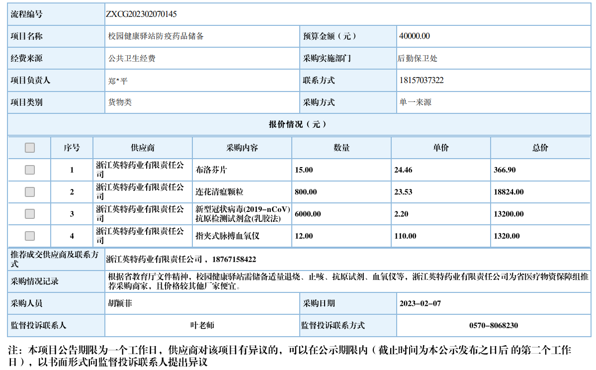 江南网页版校园健康驿站防疫药品储备自行采购信息公示