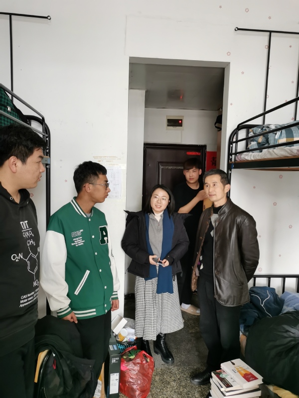 新学期伊始,为落实学校春季开学工作总体要求,进一步做好校园安全稳定工作,2月12日,华友新材料学院全体学工线在党总支书记吴忠的带领下,对学生寝室进行了走访。