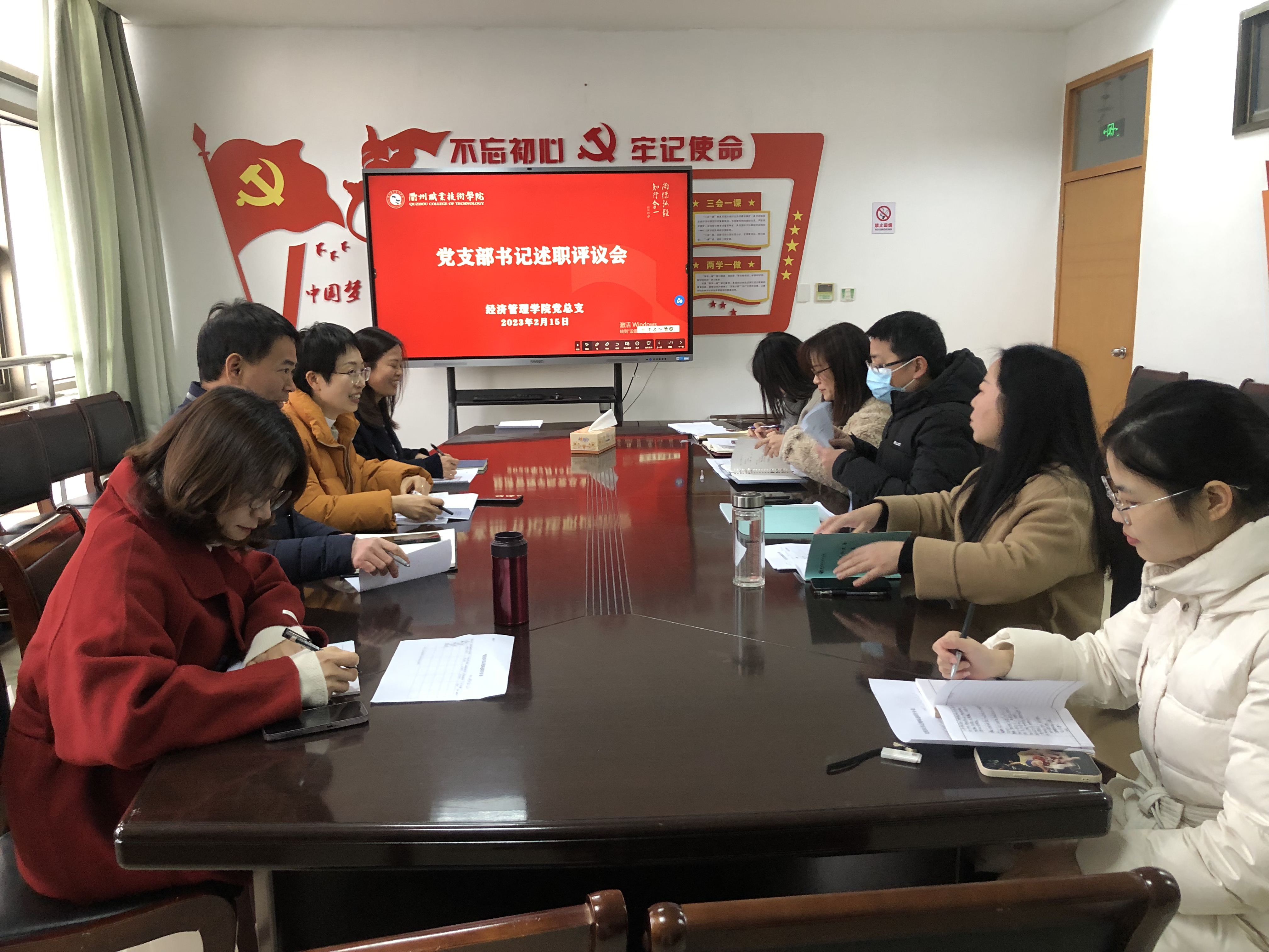 为全面落实基层党建工作任务,坚定不移推进党建工作高质量发展,2月15日,经济管理学院党总支召开党支部书记述职评议会,学院总支委员和各支部书记、两办主任参加,会议由党总支书记斯彬彬主持。