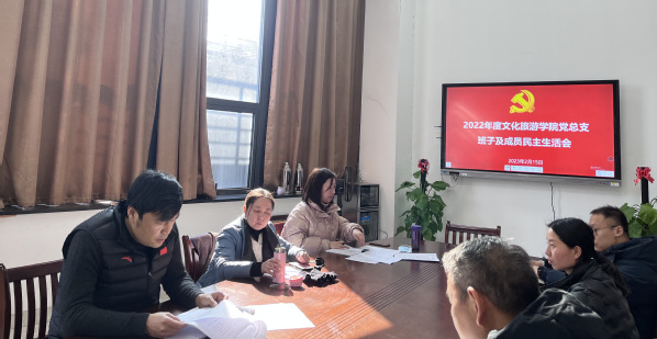 文化旅游学院于2023年2月15日下午召开了2022年度民主生活会。校党委委员、组织部部长周帅同志到会指导,文化旅游学院全体班子成员参加会议,会议由文化旅游学院党总支书记李威主持。
