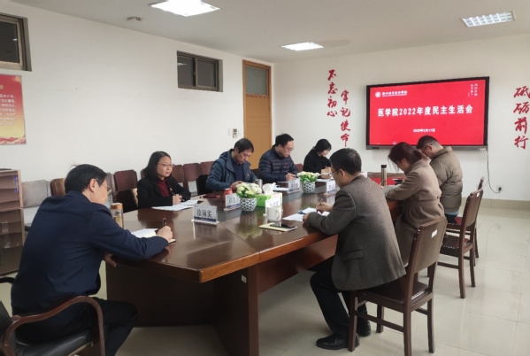 2月17日下午,医学院党总支召开2022年度民主生活会,医学院班子成员、党总支委员参加,校党委书记徐须实到会指导。会议由党总支书记余文富主持。
