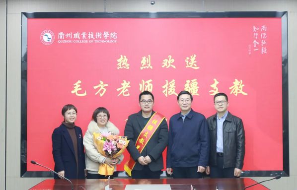 毛方说,援疆是一项光荣使命和任务。将始终牢记自己代表的是衢州人民深厚情谊、衢职院良好形象,一定配合当地领导和同事,增强政治意识,始终以民族利益为上、搞好民族团结,全心全意投身到当地教育事业当中去,为学校援疆事业增光添彩。夏玲妍作了真情流露的临别寄语,表示将竭尽全力为毛方老师解除后顾之忧,全心全意支持毛方老师投入援疆工作,协助高质量完成援疆任务。