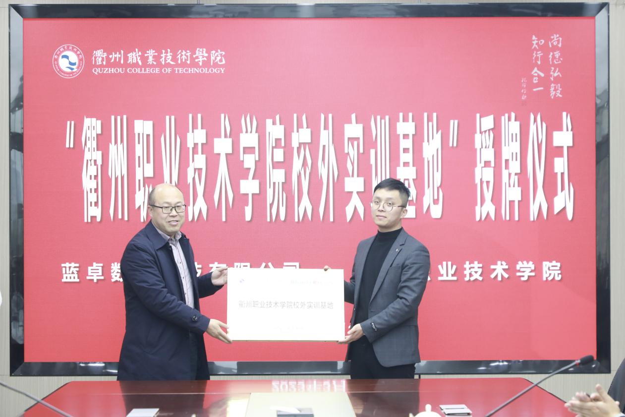 王建处长为蓝卓数字科技有限公司“江南网页版校外实训基地”授牌。