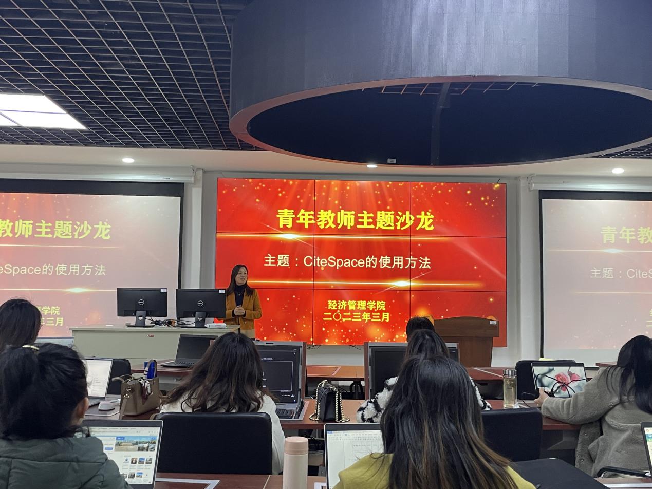 3月1日下午,经济管理学院在实训室310举办2022-2023学年第五期青年教师主题沙龙活动。本期沙龙活动由浙大城市学院图书馆信息参考中心的刘威妍老师做《CiteSpace的使用方法》的专题讲座。讲座由经济管理学院副院长何雪莲主持,经济管理学院全体教师参与。