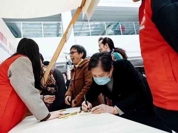 校学生会志愿者引导老人们写下微心愿