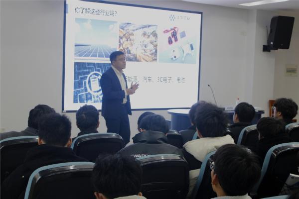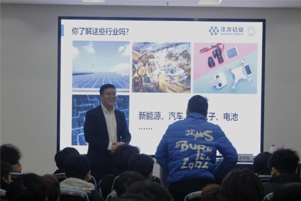 武经理以生动的案例、精准的数据、深刻的分析分别从新能源锂电行业的行业概念、行业前景、行业生态、行业建设四个方面作了最前沿的介绍,详细讲解了当前新能源行业现状、发展政策、市场供需、竞争格局及未来前景,使同学们对行业发展、职业通道,以及华友钴业集团企业文化有了更全面和深入的了解。