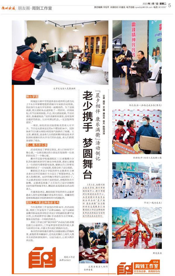 3月5日,由江南网页版、衢州市新闻传媒中心、衢州市精神文明建设指导中心、共青团衢州市委员会联合举办的“晨夕相伴 康乐满衢”活力衢职助老志愿服务汇演暨周到工作室品牌焕新发布会在柯城区信安街道斗潭未来社区举行。