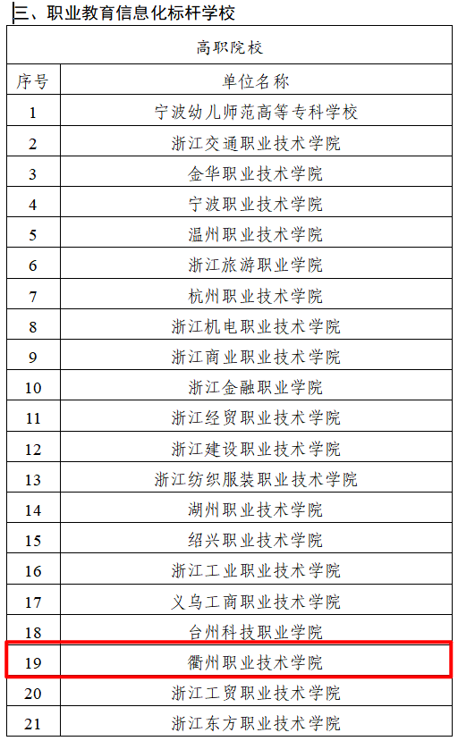 3月13日,浙江省教育厅发布了《浙江省教育厅办公室关于公布数字教育试点单位名单的通知》(浙教办函〔2023〕65号),我校成功入选浙江省职业教育信息化标杆学校。