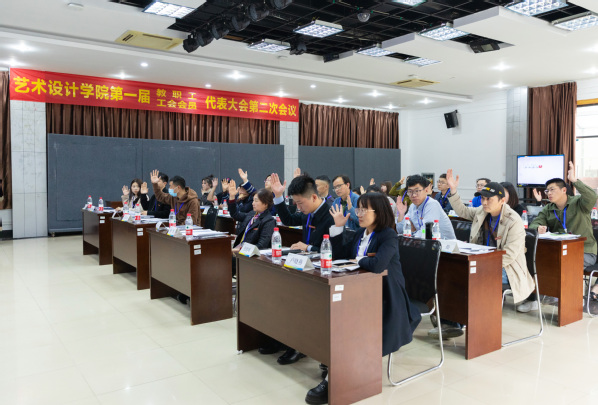 在庄严的《国际歌》中,艺术设计学院第一届教职工暨工会会员代表大会第二次会议胜利闭幕。