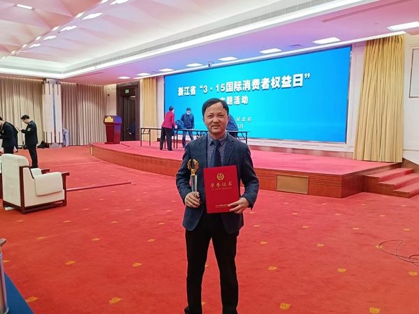 2023年3月15日上午,浙江省人民政府举办了“3·15国际消费者权益日”主题活动。我校机电工程学院余富忠老师作为义工代表载誉而归,获评2022年度浙江省“最美消费维权义工”荣誉。
