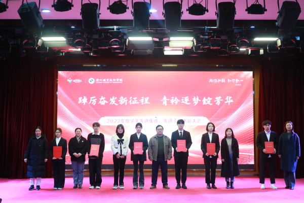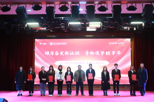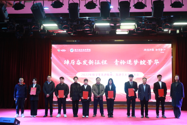 为深入学习贯彻党的二十大精神,进一步落实立德树人根本任务,全面加强学风、班风、校风建设,充分发挥榜样青年在广大学生中的引领作用,3月24日中午,我校“踔厉奋发新征程 青衿逐梦绽芳华”2022年度学生先进集体、先进个人表彰大会在图书馆一号报告厅举行。党委副书记何百通出席并讲话,学工部负责人、各二级学院党总支书记、副书记、辅导员、班主任代表及学生代表参加。