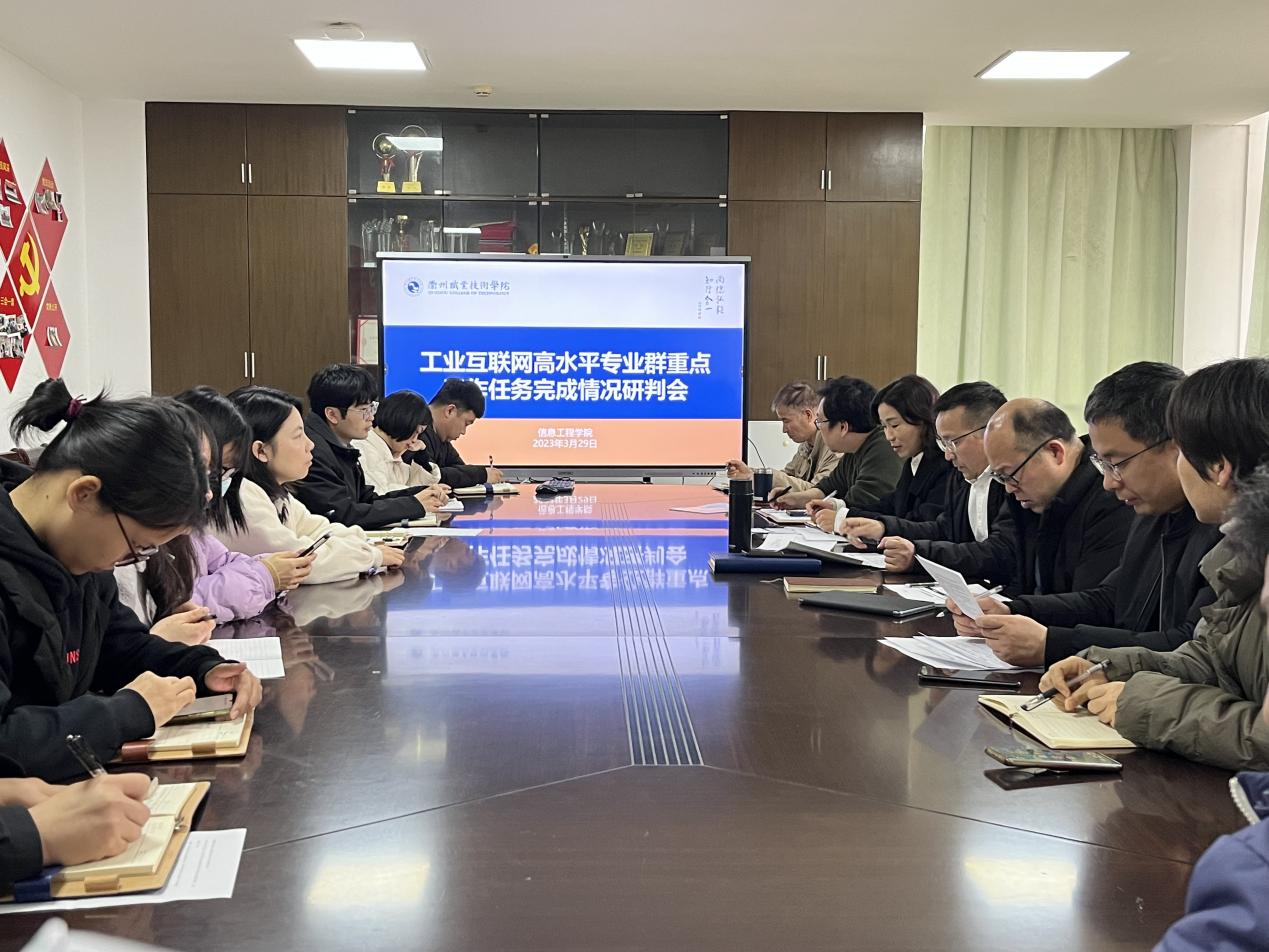 3月29日下午,信息工程学院在724会议室召开工业互联网高水平专业群建设三年行动计划重点工作任务完成情况研判会,教务处处长王建、副处长卢艳,信息工程学院院长马文龙出席会议,院领导班子和各任务负责人参加会议,会议由信息工程学院副院长李杰主持。