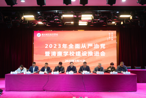 3月31日,学校召开2023年全面从严治党暨“清廉衢职”建设推进会,深入学习贯彻习近平总书记关于全面从严治党的重要论述,贯彻落实党的二十大精神和党的自我革命战略思想,落实中央、省、市纪委全会和全省教育系统全面从严治党工作会议要求,围绕打造勤廉并重的新时代党建高地和清廉建设高地,坚定不移纵深推进学校全面从严治党,深入推进党建品牌年行动和“清廉衢职”建设,为学校“双高”建设提供坚强保障。