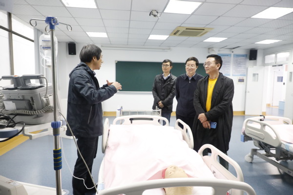 郭肖华一行实地走访了我校校史馆、乡村振兴社会培训展厅、工业互联网实训中心、医护康养实训中心、艺术设计学院,详细了解了我校高水平专业群建设、实训基地建设、服务地方发展等情况。