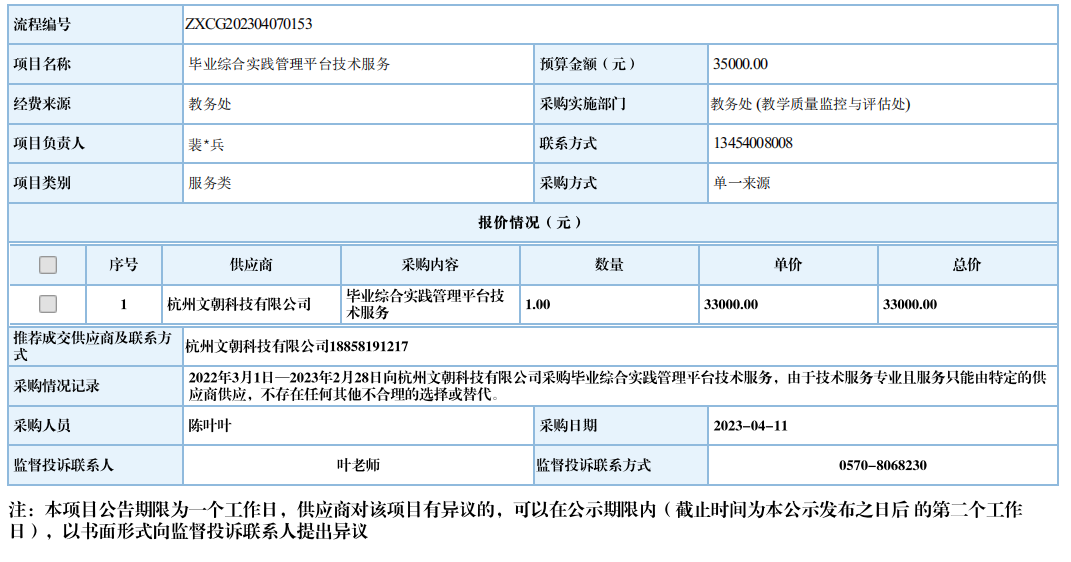 江南网页版毕业综合实践管理平台技术服务自行采购信息公示