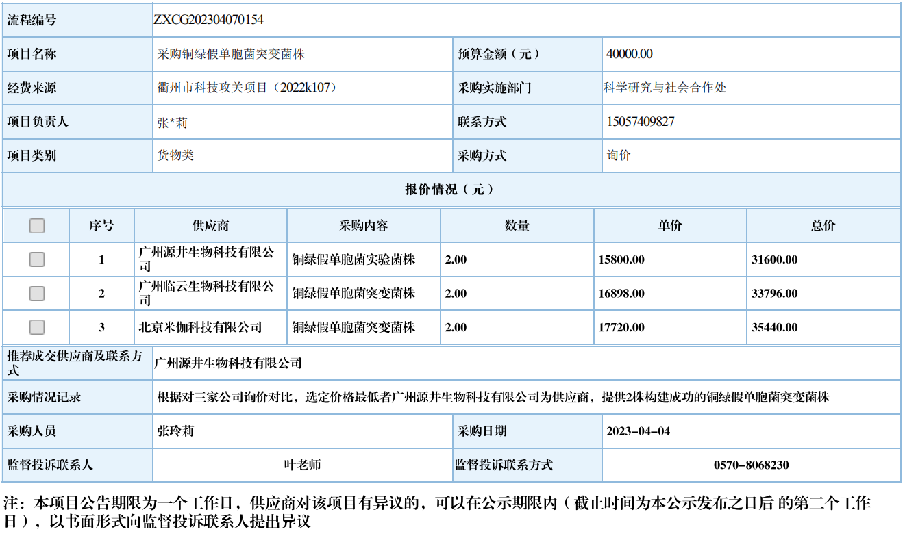 江南网页版铜绿假单胞菌实验菌株自行采购信息公示