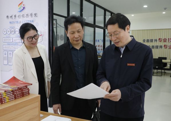 4月11日,市文联党组书记、主席颜雪高,副主席戴郑娇一行到校调研,校党委书记徐须实陪同。