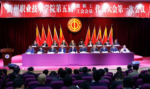 4月13日上午,我校第五届教职工暨工会会员代表大会第一次会议在图书馆1号报告厅开幕。校党委书记徐须实,党委副书记、校长吕延文,党委委员、纪委书记方焕云,党委委员、副校长余建军、徐浪静、姚水洪,党委委员、宣传部长孔庆红,党委委员、组织部长周帅出席,党委副书记何百通主持。衢州市教育工会主席汪樟华应邀出席。大会应到正式代表105人,实到99人。