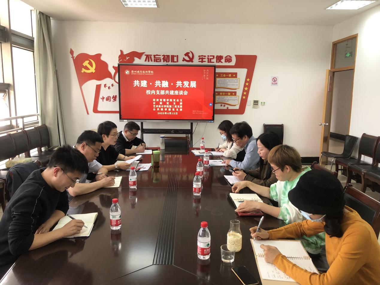 座谈会上,与会人员结合党建和业务特色,就科研合作、社会服务、师生竞赛、人才培养、课程思政、志愿服务等方面,进行充分交流与探讨。座谈会氛围融洽而热烈,双方都一致表示校内支部共建很有意义,既打开了党建工作新思路,又能以共建深化党建创新,以党建创新推动更大发展,在共建、共融中,实现共发展。