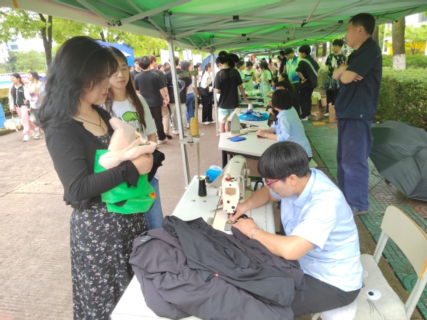 学生公寓亲情服务活动共有四个子活动,由学生公寓的楼长、值班员、保洁员、大学生自我发展中心(简称大发)干事等一起为广大师生服务。“衣”心“衣”意缝补活动,为师生提供免费织补、熨烫衣物、裁裤脚、修鞋等服务。“骑”进校园打气活动,为师生提供免费的自行车打气、补胎等服务。“洗”气临门清洗活动,为师生清洗键盘、眼镜。“废”尽心思回收活动,邀请虎哥进校园开展废品回收活动。