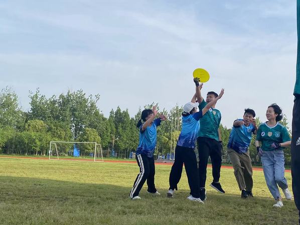 比赛开始,身穿不同颜色队服的两队队员不时奔跑、投递、跳跃、飞扑、躲避,灵活地把飞盘传递到队友手中,一场飞盘竞技赛正在激烈进行,小小的飞盘在空中划出悠长的弧度,一位队员跳起接住了它并寻找时机扔给自己的队友,在紧张而默契的配合下成功得分,引起了场上的阵阵欢呼……别小看这一个小小的盘子,飞盘运动综合了篮球的脚步移动、足球的跑动、网球的跑位、橄榄球的得分和排球的积分方法等特点,集娱乐竞技于一体,是无裁判的和谐比赛,两校飞盘队队员们尊敬对手、拼搏竞争、高度协作,体现出新时代高校辅导员顽强拼搏的体育精神,最终我校与衢州学院1胜1负1平局的成绩结束这场浙西高校飞盘友谊赛。