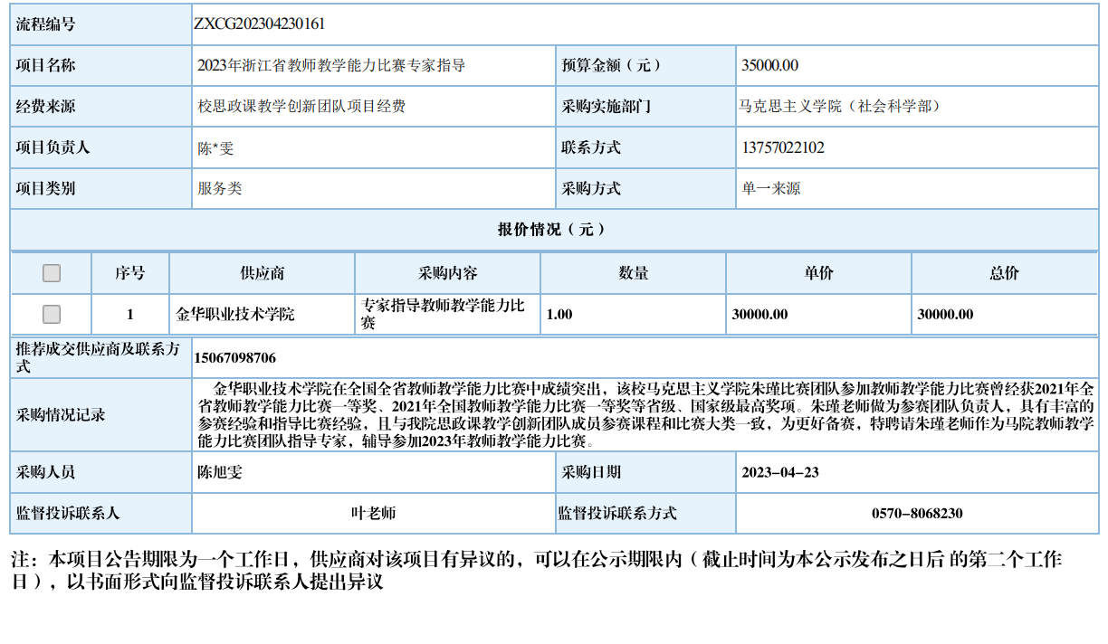 江南网页版2023年浙江省教师教学能力比赛专家指导自行采购信息公示