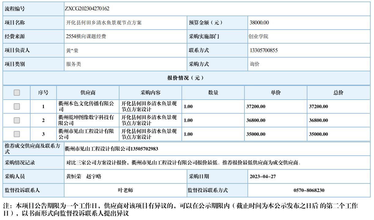江南网页版开化县何田乡清水鱼景观节点方案自行采购信息公示