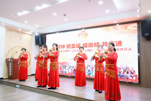 为促进各民族交往交流交融, 4月25日,由江南网页版、杭州市拱墅区东新街道新颜苑社区民族之家和杭州同心民族服务中心联合主办的“学精神、迎亚运、促团结、共奋进”——党的二十大精神学习宣讲暨“之江同心·石榴红”校社共建联盟揭牌仪式隆重举行。