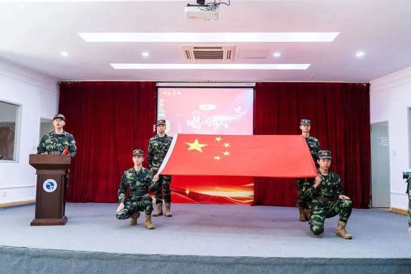 学习二十大、永远跟党走、奋进新征程。为实现中华民族伟大复兴的中国梦而奋斗,是我们人生难得的际遇。每个青年都应该珍惜这个伟大时代,做新时代的奋斗者。衢职院国旗护卫队指导老师罗烨带领全体团员庄严宣誓。