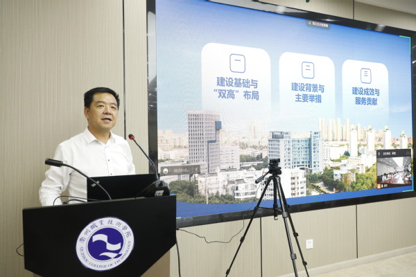 何百通、尚强数字化研究院院长俞舜分别以《新时代教育评价改革试点项目:卫生健康类专业群“双高”建设内部质量保障体系建设进展报告》《专业数字化的实践路径与案例》为题,围绕“双高”建设、专业群建设、内部质量保障体系建设等方面同与会专家学者们开展深度研讨。
