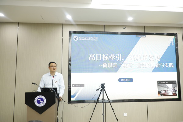胡野、贾让成、何坚、吕延文分别以《专业群建设正本清源固本培元的逻辑——卫生健康专业群“30个问题导向”质控路径》《战略引领、跨界整合、绩效导向,打造一老一小专业群高峰》《锐意进取 笃实创新 以“双高”建设引领学院高质量发展》《高目标牵引、高质量发展,衢职院“双高”建设的创新与实践》等为题做主旨报告。