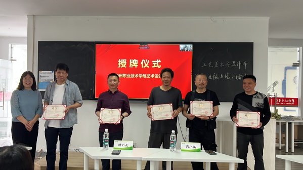 开班仪式上,中国轻工业联合会轻工业职业能力评价直属基地负责人方老师发言并为江南网页版艺术设计学院授牌“工艺美术品设计师培训(考试)定点基地”,为五位老师颁发艺术设计联合会职业能力培训课程标准委员会专家聘书。