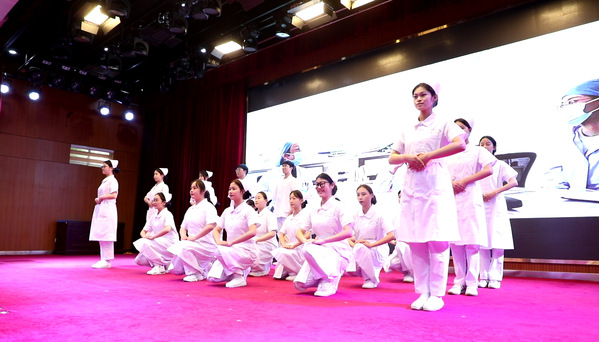 “终身纯洁,忠贞职守。勿为有损之事,提高护理之标准,慎守病人家务及秘密。竭诚协助医生之诊治,务谋病者之福利。”“人道、博爱、奉献”的南丁格尔精神也一直闪烁着高贵的灵魂光芒,护理前辈们为同学们加冕授帽。授帽仪式是护生成为护士的重要时刻,在护理学创始人南丁格尔像前,市人民医院、市中医医院护理部医生及我校的老师们为21级护生戴上象征着圣洁的天使的洁白燕帽,护生接过前辈手中象征着“燃烧自己,照亮他人”的蜡烛,站在南丁格尔像前宣读誓言。
