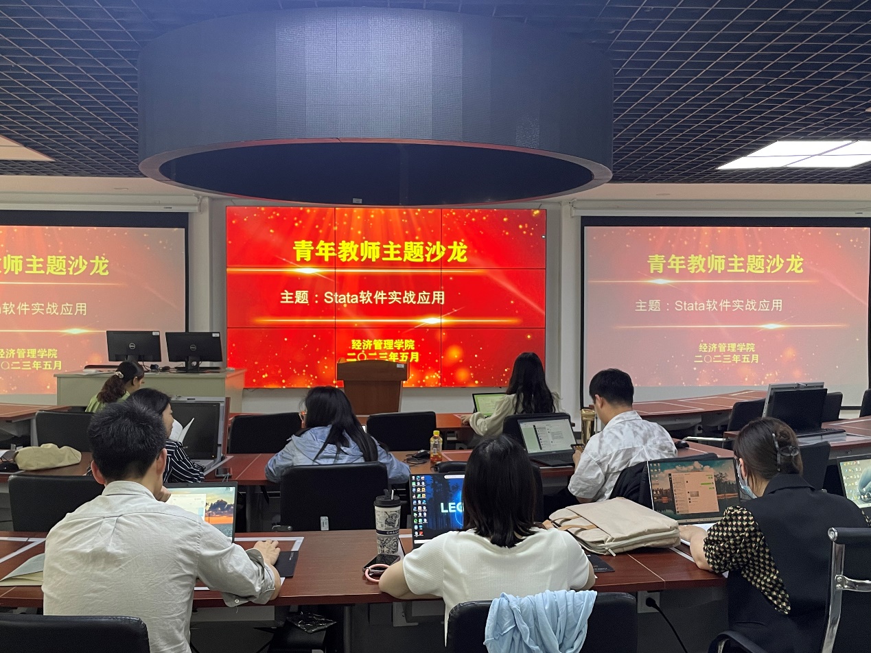 5月17日下午,经济管理学院举办2022-2023学年第七期青年教师主题沙龙活动。本期活动由大连海事学院的刘雅婕博士做《Stata软件实战应用》的专题讲座。讲座由经济管理学院副院长何雪莲主持,经济管理学院全体教师参与。