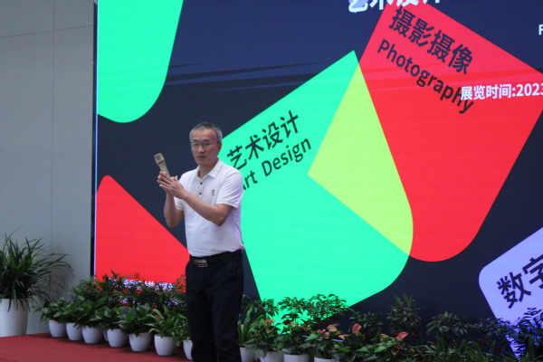 叶云龙在开幕式上致辞,他表示本次毕业作品展既是总结也是起点,是艺术设计学院致力文艺赋美、助力共富的积极尝试,也是对“专业融合、产教融合、双创融合”育人模式的积极探索。