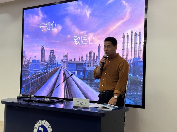 王定飞从个人成长经历、匠心永恒以及争创世界一流三方面进行讲解,他认为的匠心是热爱工作、学习欲望、专注坚持、精益求精,他还将到无论任何行业都必须有工匠精神,正所谓三百六十行,行行出状元。王师傅深入浅出地讲解了匠心的内在意义,使同学们深刻地理解了匠心精神,也为今后的学习生活定下来目标。最后王定飞以业精于勤,行成于思来激励同学们努力学习。“想要成为不一样的自己,除了热爱我们的工作,专注和坚持也是非常关键的。有时候我们离成功就差那么一点点。”王定飞鼓励同学们,希望同学们牢记匠心精神,以大国工匠和劳动模范为榜样,做一个品德高尚而追求卓越的人,积极投身于中华民族伟大复兴的宏伟事业中。