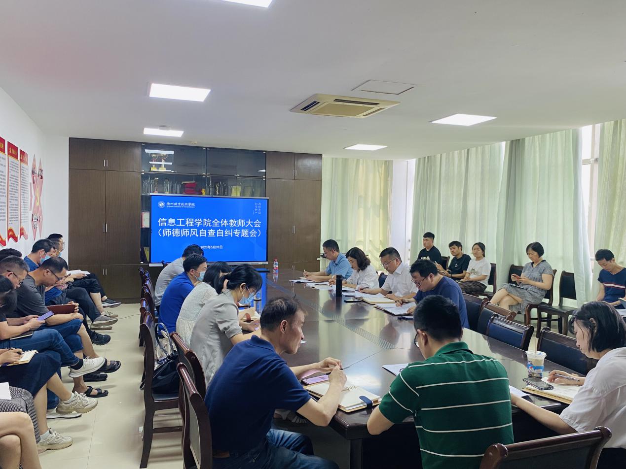 5月31日,信息工程学院召开师德师风自查自纠专题会。信息工程学院院长马文龙主持会议,全体教师参加。