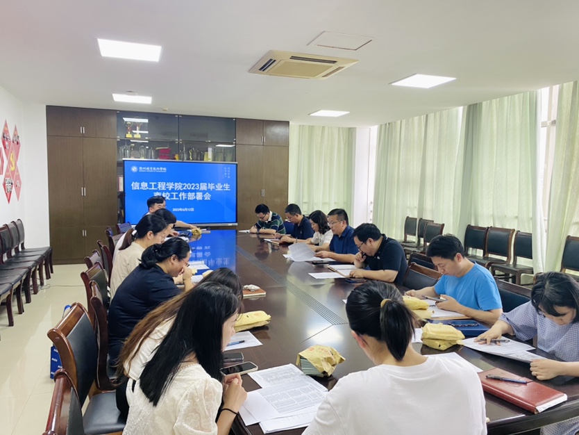6月12日,信息工程学院在724会议室举办2023届毕业生就业工作暨离校工作部署会,院长马文龙主持会议,党总支副书记姚钰、副院长李杰、各专业主任、各辅导员以及毕业班班主任参加本次会议。