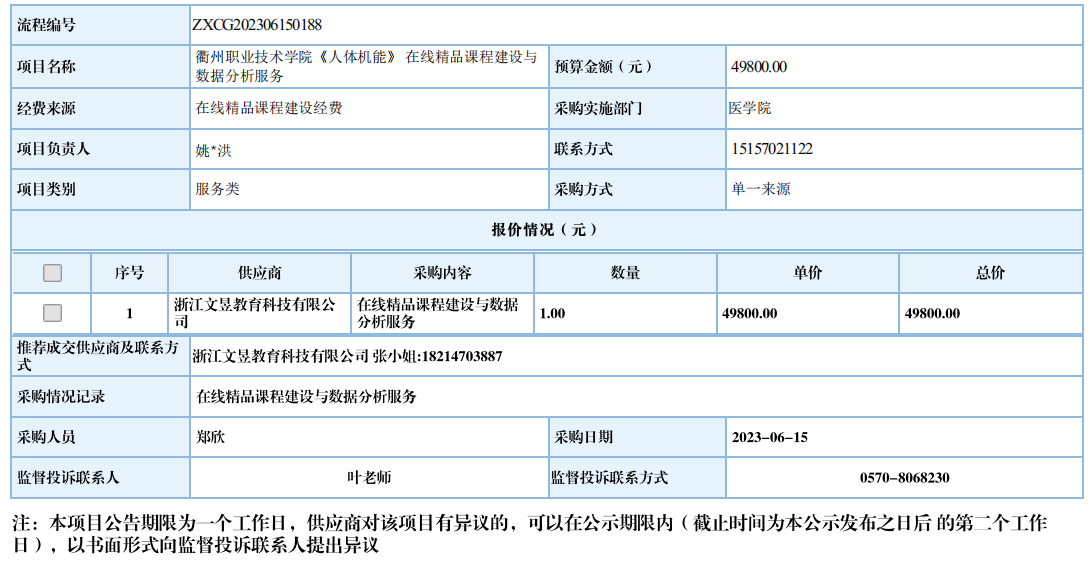 江南网页版《人体机能》在线精品课程建设与数据分析服务自行采购信息公示