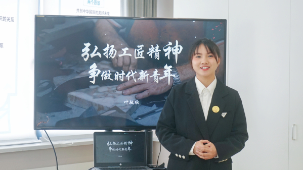花开衢职“石榴红”宣讲团成员叶敏欣宣讲《弘扬工匠精神 争做时代新青年》,“工匠精神就是执着专注、精益求精、一丝不苟、追求卓越。”要做“有理想、敢担当、肯吃苦”的新时代青年,从工匠精神中找到通往胜利彼岸的桥梁,跑出新时代