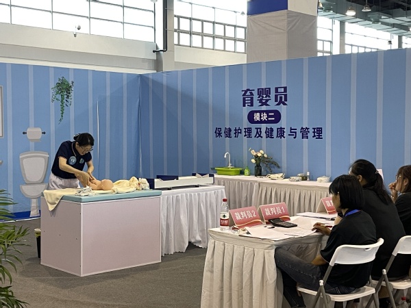 育婴员作为省赛新增项目,竞赛内容以《育婴员国家职业技能标准》三级/高级工要求为主,包括生活照料、保健护理及健康与管理、教育实施、指导与培训四个方面,并将理论考核融入技能操作考核过程中,主要考察参赛选手实际操作的规范性、熟练性、实用性、创新性及参赛选手实际应用、应急处置能力和技巧。