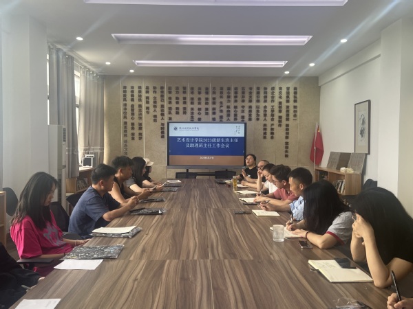为进一步加强新生班主任队伍建设,提升班级管理水平,做好2023级新生班级管理工作, 2023年6月27日,艺术设计学院召开2023级新生班主任及助理班主任工作会议,艺术设计学院党总支书记许金友,副书记范洪梅,艺术设计学院全体2023级新生班主任及助理班主任参加会议,会议由党总支副书记范洪梅主持。
