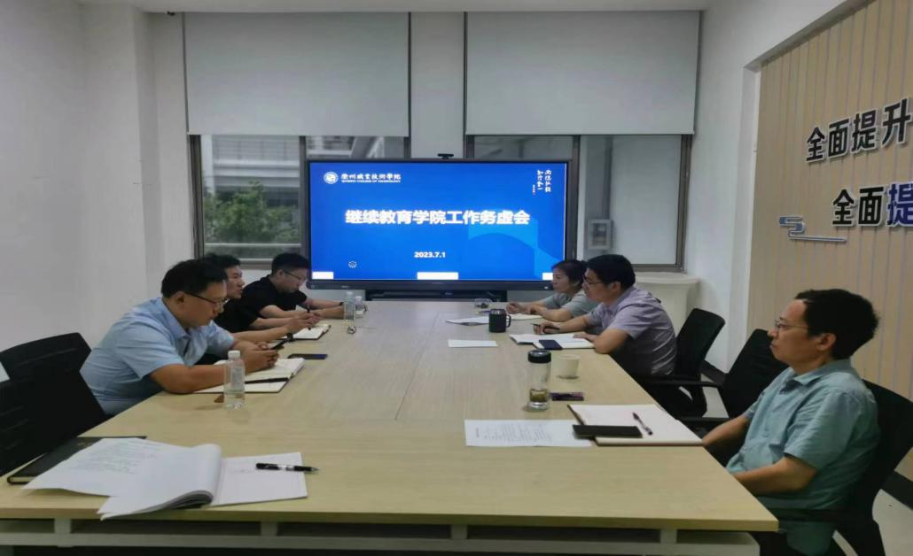 7月1日上午,继续教育学院工作务虚会在共富展厅会议室召开,会议由院长戚景云主持,学院班子成员、全体科级以上干部参加。