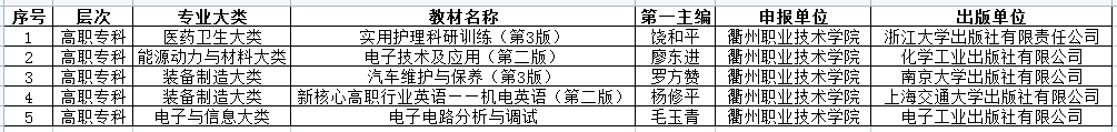 6月30日,教育部公布了首批“十四五”职业教育国家规划教材书目名单,我校饶和平主编的《实用护理科研训练(第3版)》、廖东进主编的《电子技术及应用(第二版)》、罗方赞主编的《汽车维护与保养(第3版)》、杨修平主编的《新核心高职行业英语——机电英语(第二版)》、毛玉青主编的《电子电路分析与调试》等5部教材成功入选。